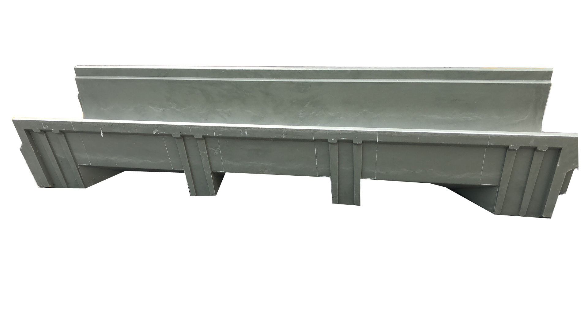 從出水口安裝起,先固定底部,以方便側(cè)面混凝土的澆筑。S部分根據(jù)設(shè)計(jì)圖要求選擇合適尺寸。排水溝完成面建議比兩側(cè)地面完成面低3-5mm,最大高度不得超過地面完成面高度。預(yù)先安裝好選定的蓋板,防止來自混凝土結(jié)構(gòu)的壓力而導(dǎo)致溝體變形。同第二步,側(cè)面的混凝土結(jié)構(gòu)也需加固(承重等級(jí)E600及以上的需要配加強(qiáng)筋)。